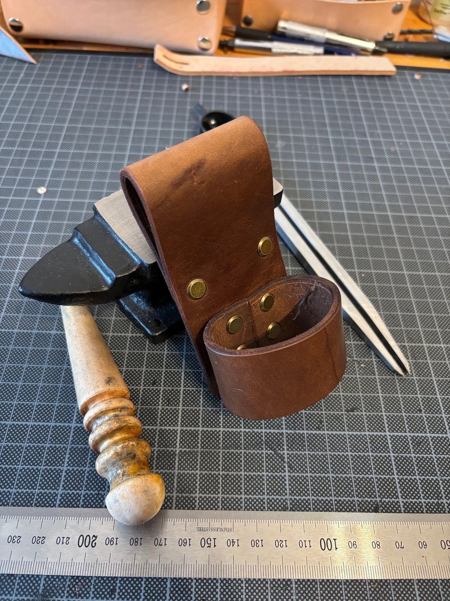Handgefertigt aus vegetabil gegerbtem Rinderleder. Lederstärke ca. 3,5 mm.