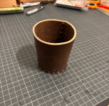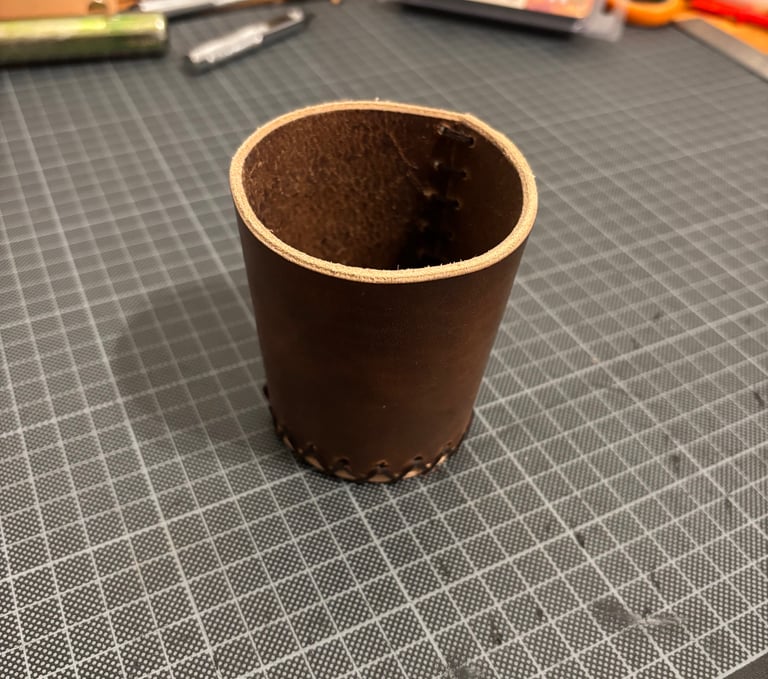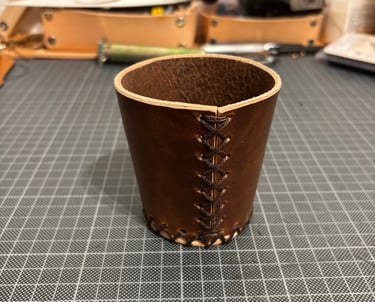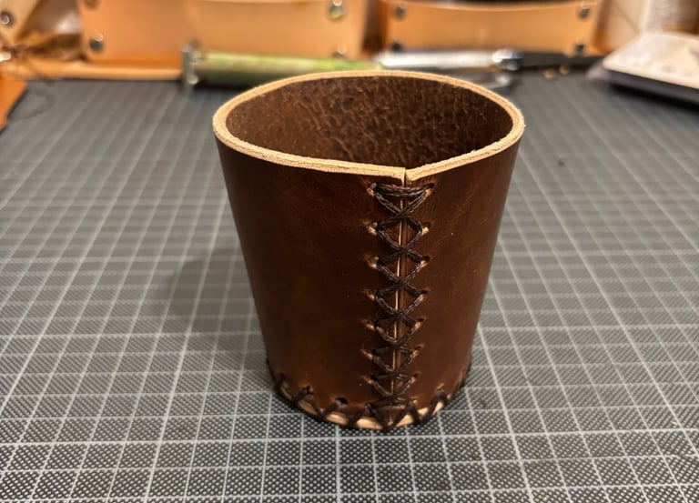 Handgefertigt aus vegetabil gegerbtem Rinderleder. Lederstärke ca. 3mm. Ohne Würfel.